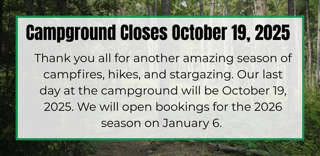 Notes: We sell wood and ice and have a camp store with essentials, snacks, souvenirs and clothing. Washer and dryer are not available on site. Dump station located on site. Pets are welcome. No fireworks or recreational vehicles allowed.